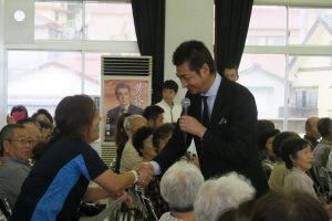 約20年ぶりという神島に降り立った山川を、住民の方々が早速港でお出迎え。「来てくれてありがとう」、「今日見に行くからね」との声に、山川は笑顔と握手で応え、歓迎ムードに喜びもひとしお。
