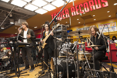 17時からスタートしたインストアでは、「サヨナラ・ラヴ」「ダー・フォー・ユー」「Automatic」「ヒット・ミー」の4曲を披露!300人以上のファンの方にお集まりいただきタワーレコードの1Fはステージ前だけでなく、いたるところにお客様が集まりライヴ・ハウスと化しておりました!