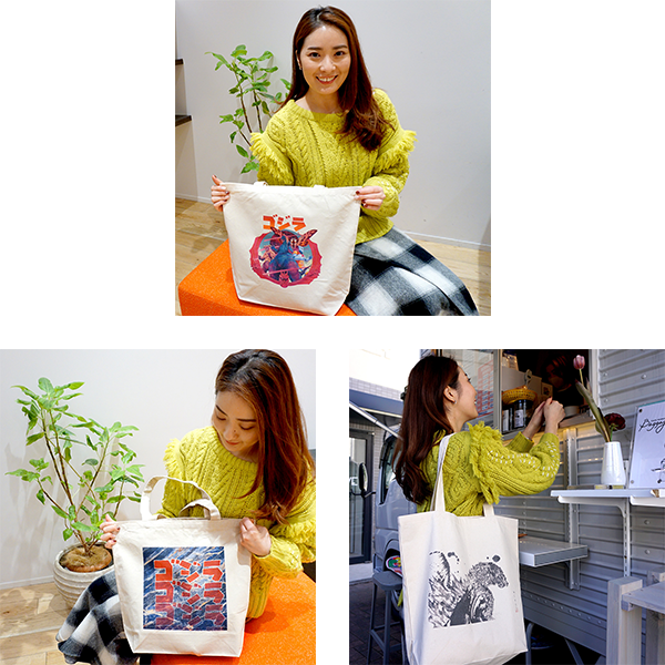 3名の美術家が当プロジェクトのために製作したアートをデザインしたビッグ・サイズのトートバッグ。