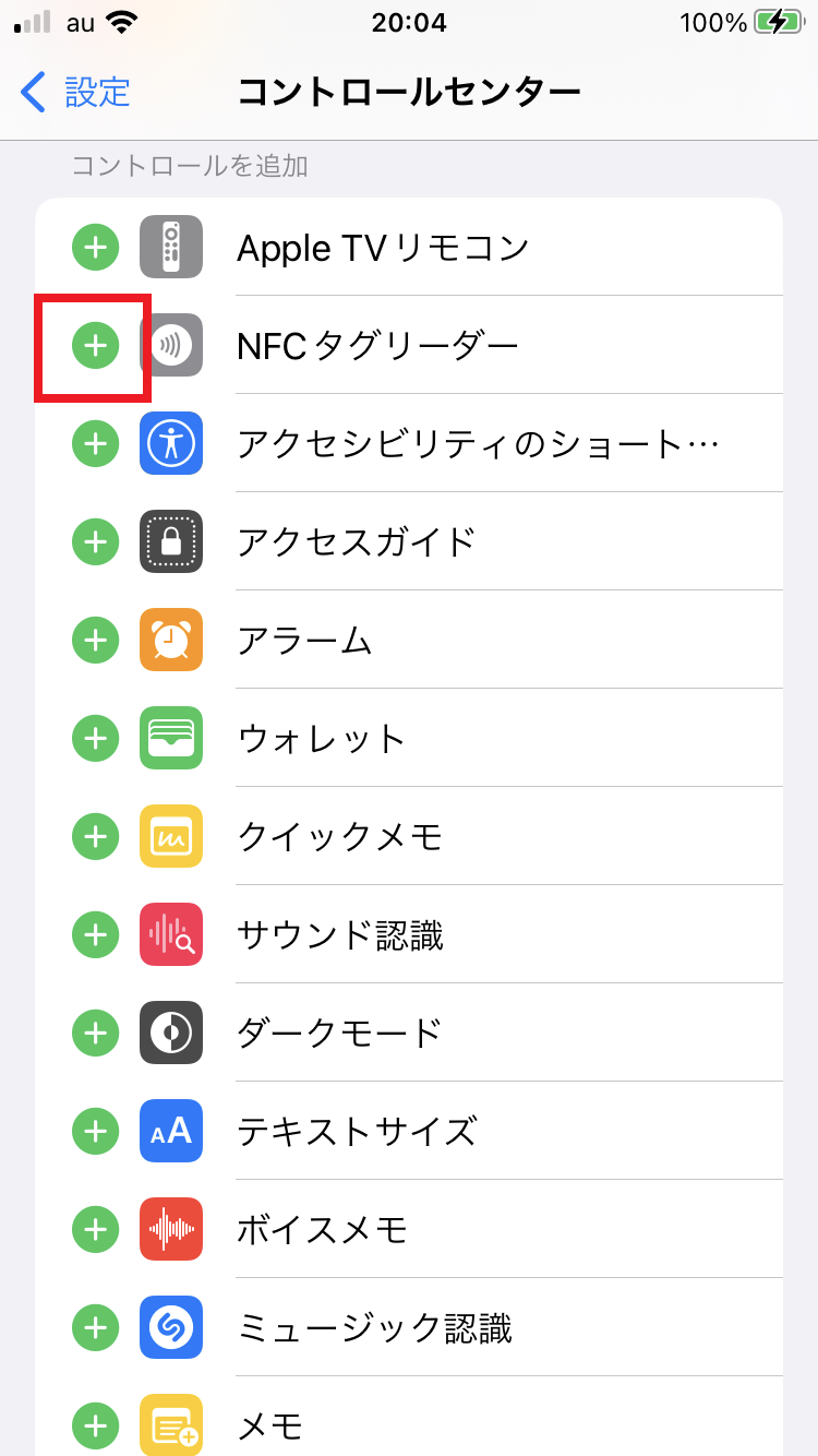 コントロールセンターのNFCウィジェットの設定方法(7、8、X、SE(第1世代)