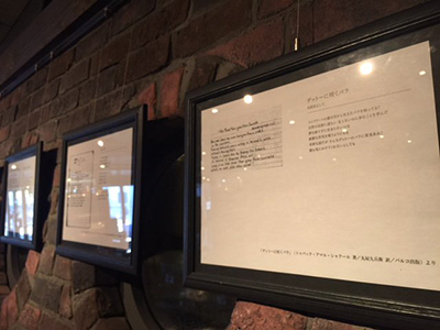 映画の写真パネルや丸屋九兵衛の新訳で12月27日に発売となるトゥパックの詩集「ゲットーに咲くバラ」より詩の展示。