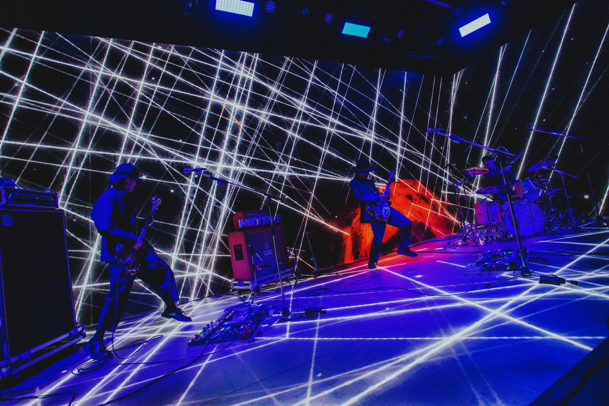 5月21日19時より、「ACIDMAN ニューアルバム配信ライブ」が初回配信された。それは今秋リリース予定の12枚目のオリジナルアルバムからの新曲をいち早く披露する、ロックバンドとして前代未聞の試みで、会場は巨大な4面LEDパネルとXR映像のメディアサーバーを常備した新設スタジオ「BLACKBOX³」。ACIDMANらしいアッパーなロックンロールにファンキーなグルーヴを掛け合わせた1曲目「Visitor」から、壮麗なLEDとXR映像が躍動し、ヘヴィなギターリフに3人の熱い掛け合いシャウトがハマる「歪んだ光」では、白い閃光が縦横無尽に画面を突っ切って目と耳を釘付けにする。凄い迫力だ。