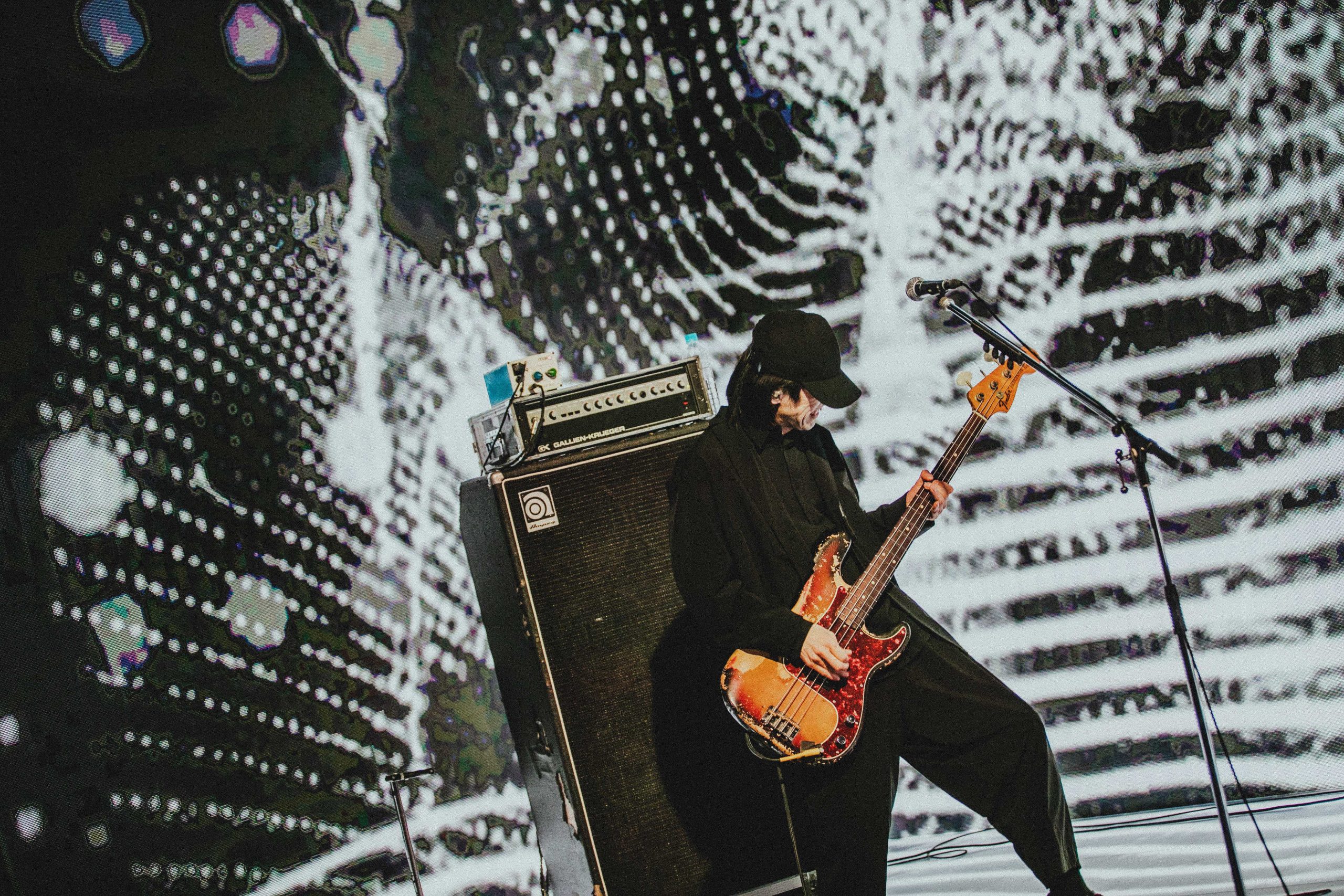 この日のラスト曲、8曲目に演奏されたのはACIDMANならではのラウドでドラマチックなミドルロックバラード「innocence」。歌う前に「INNNOCENCE=純真無垢に人間は戻って行くべき」「きれいごとを歌い続ければ、世界は少しでも美しくなるんじゃないかという祈りをこめて」と、大木が真摯に説明してくれる。4面LEDスクリーンをフルに使い、足元には大地、背景には銀河の星のまたたき、そして宇宙空間に太陽が輝く。五感が激しく揺さぶられる映像と共に、ACIDMANの音楽が雄大に鳴り響く。なんとも荘厳なフィナーレだ。