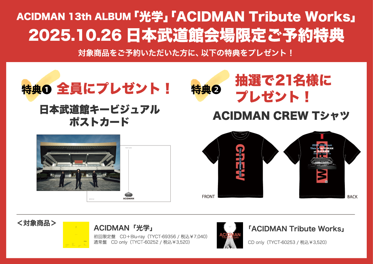 「This is ACIDMAN 2025」10/26(日)日本武道館公演にて「光学」「ACIDMAN Tribute Works」ご予約購入で会場限定特典プレゼント!