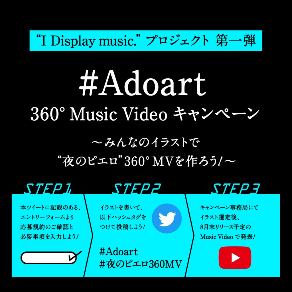 本プロジェクトの一環として、6月14日にリリースした新曲「夜のピエロ」にまつわるイラストを一般募集し、集まった作品によって「夜のピエロ」のスペシャルMVが制作される「#Adoart 360°Music Video キャンペーン〜みんなのイラストで夜のピエロ360°MVを作ろう〜」の実施が決定した。スペシャルMVは、スマートフォンのYouTubeアプリで視聴すると、360°どの方向から見ても「夜のピエロ」の世界が楽しめる特別仕様になる。