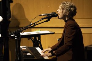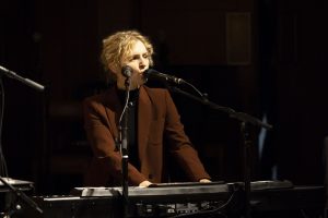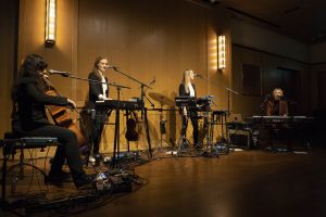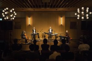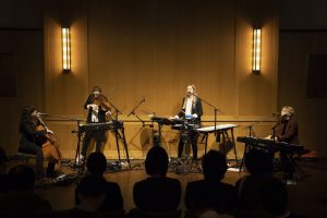 その角銅の言葉を受け、アグネス・オベルが登場。チェロ~ヴィオラ~パーカッションに、キーボード&ヴォーカルのアグネスという全員女性メンバーで固められた4人編成で、冒頭から全員が見事なコーラスワークを披露し来場者を惹きつけた。アグネスにとってこの日のステージが記念すべき日本初パフォーマンス。来年2月発売予定の新作『マイオピア』収録曲をひと足早く演奏したが、北欧らしい澄み切ったナンバーだけではなく、時にドラマチックなアンサンブルも聴かせ、場内は静かな熱気に包まれた。