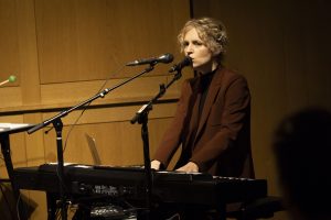 演奏後のトークでは、自身の作品づくりのこだわりについて、「楽曲が持つ内容をプロダクションの過程によって描く、ということを念頭に置いている」と語った。また、“了見が狭い”という意味のタイトルを関した新作『マイオピア』のテーマについて、「人は往々にして自分の考えにとらわれて、そこから逃れられなくなることがあるが、それには良いケースもある、ということを表現したかった」と説明した。