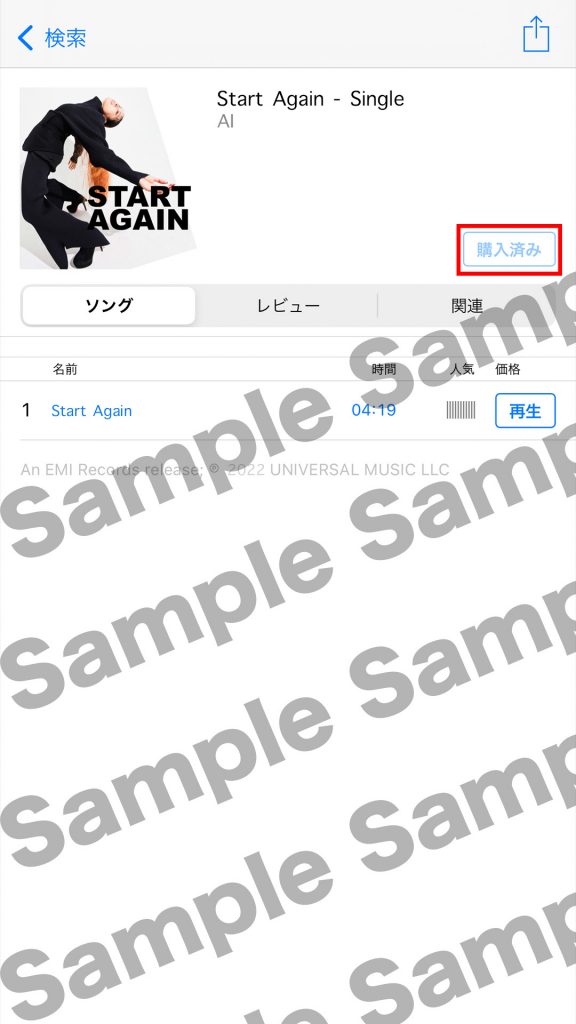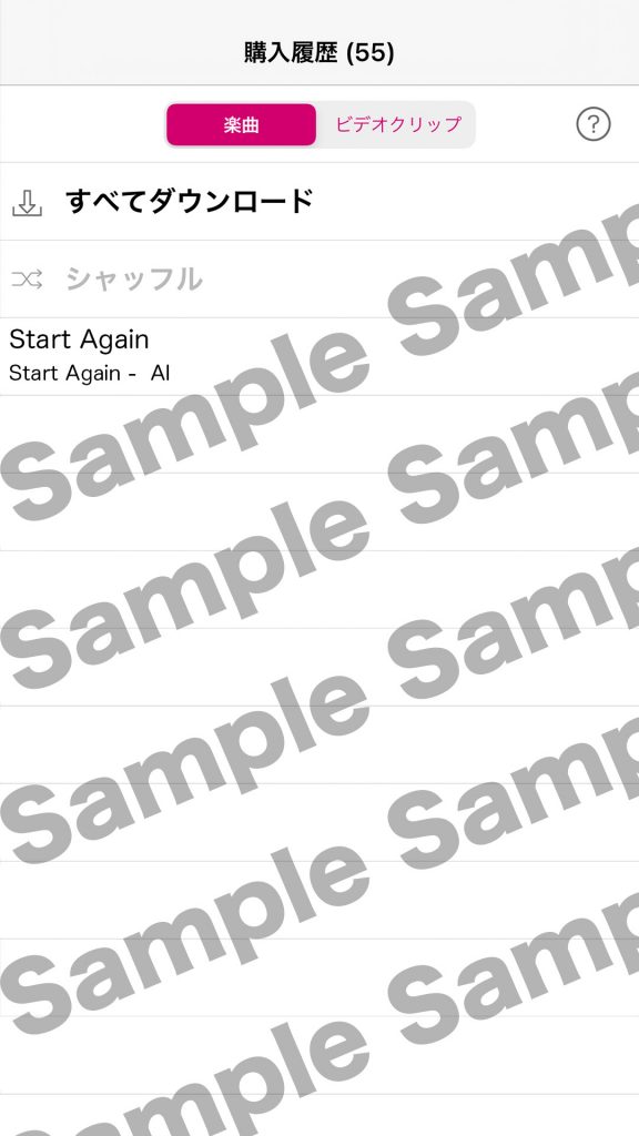 ※レコチョク アプリ(Androidの場合)、レコチョクplus+プレイヤー(iPhoneの場合)でのAI「Start Again」が載っている購入履歴画面のスクリーンショットが対象となります。