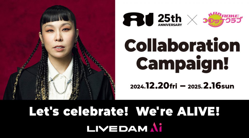 全国のカラオケDAMシリーズにて、AIの25周年を記念してコラボキャンペーンを2024年末~2025年に亘って続々と実施いたします。