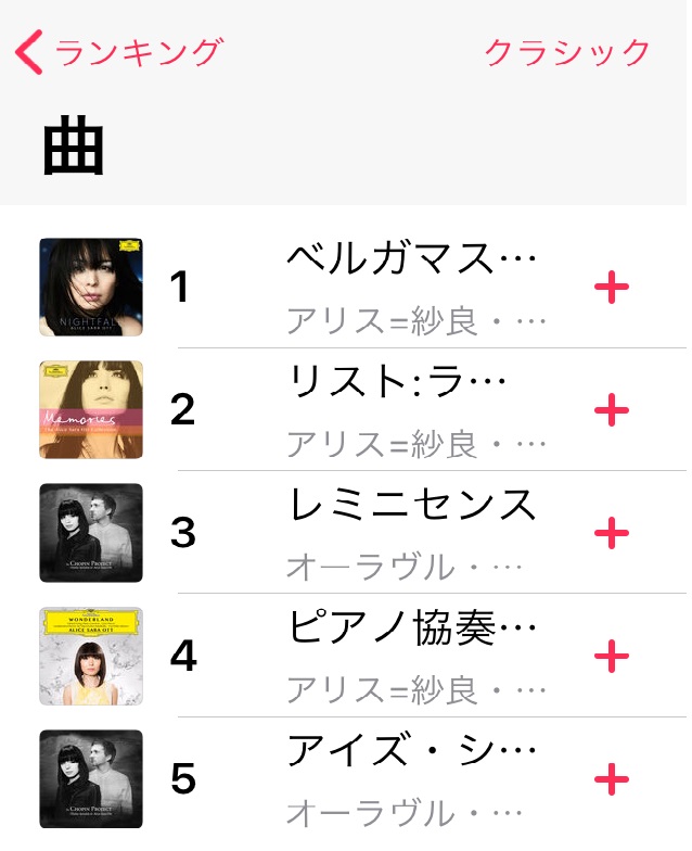 番組出演後にはApple Musicのクラシックのソング・ランキングで1位~5位までを独占、iTunesクラシックのアルバムとソングのランキングともに1、3、4、5位にランクイン、amazonのクラシックチャートも1位~3位を独占しました。