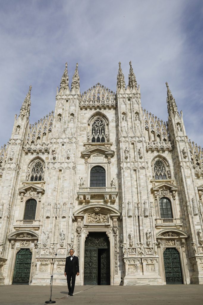 4月12日の復活祭の日曜日(日本時間 13日午前2時)に、イタリアの世界的テノール歌手アンドレア・ボチェッリがミラノの象徴であるドゥオーモ大聖堂で無観客の中、自身の人生を代表することになるパフォーマンスを行った。この模様はYouTubeにて世界同時生配信され、人々は世界中から、多くの者が社会から距離をとり、家で過ごすこの世界を一つに結ぶ、この感動的なパフォーマンスを目撃した。