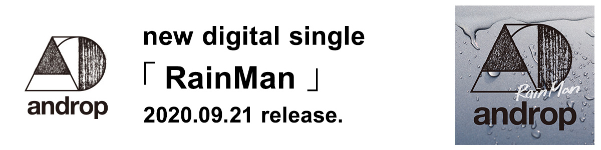 WHAT'S NEW 2020.12.25 LIVE 内澤崇仁が手掛けた、この冬にお勧めしたいプレイリスト を公開! 2020.10.15 LIVE androp周年記念ライブ、有観客&配信ライブ同時開催決定!! 2020.10.05 TOPICS androp online live 2020 “RainMan”セトリプレイリスト公開中! 2020.09.28 TOPICS 「RainMan」リリース記念、Twitterキャンペーンが好評につき、 Instagramでもキャンペーンがスタート! MORE