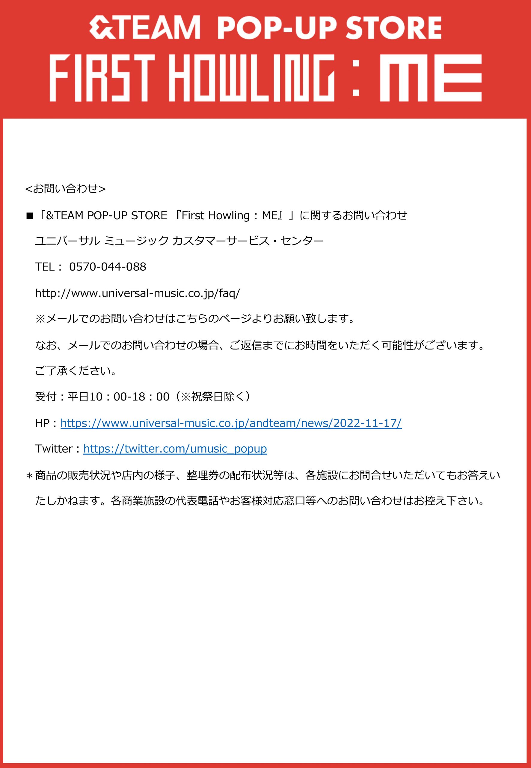 ■&TEAM POP-UP STORE『First Howling : ME』に関するお問い合わせ
