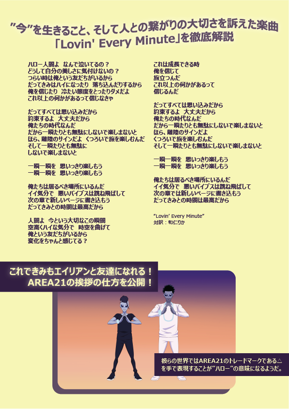 さらに、前曲「Lovin’ Every Minute」やAREA21特有の挨拶の仕方を徹底解説した月刊△9月号が公開。