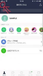 LINEの「友だち」タブの左上にある歯車マークをタップ