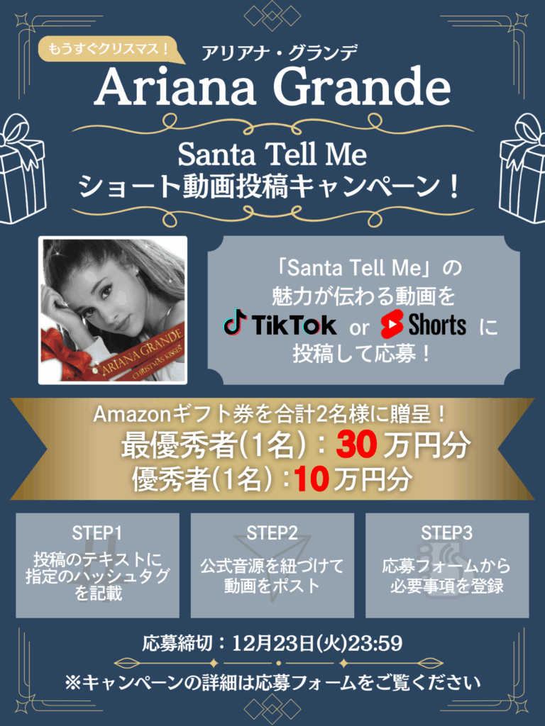 【アリアナ・グランデ「サンタ・テル・ミー」ショート動画投稿キャンペーン概要】