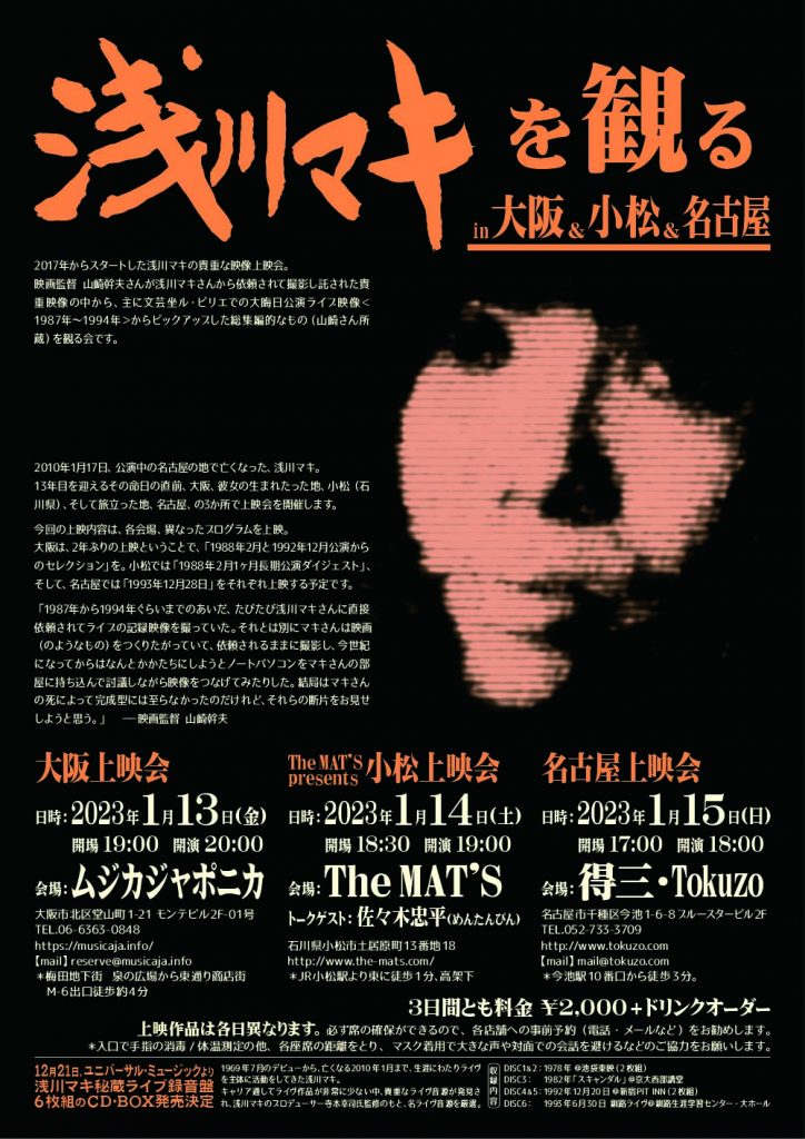 浅川マキを観る in 大阪&小松&名古屋 開催決定!