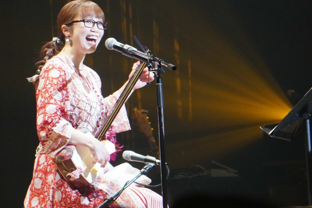 ステージは恒例の三味線コーナーを含めて朝倉さやの代表曲、久しぶりな曲など全18曲をたっぷり披露。アンコールでは「おかえり -manzumamake-」をアカペラで歌い、会場いっぱいの幸福な余韻の中、ステージは幕を閉じた。都会で故郷を想う「東京」から始まり、故郷に帰って「おかえり」と迎えてもらう。コンサート全体がひとつのストーリーとも感じられる2時間だった。