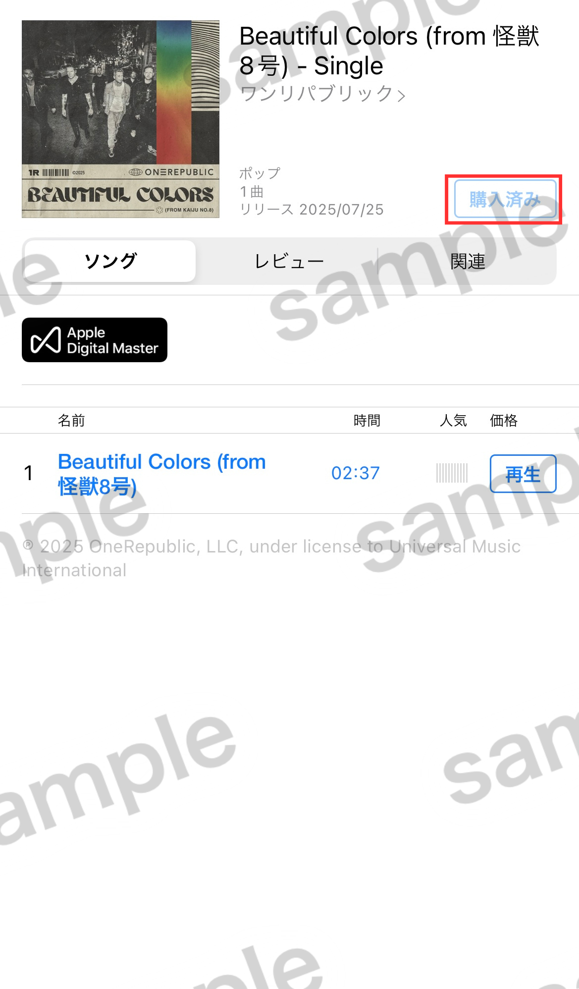 ■OneRepublic /「Beautiful Colors (from 怪獣8号)」