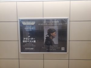 9年前、唯一行われたアヴィーチー来日公演の開催日を記念して、当時の大阪・千葉両公演地の最寄り駅にポスターが掲出された。