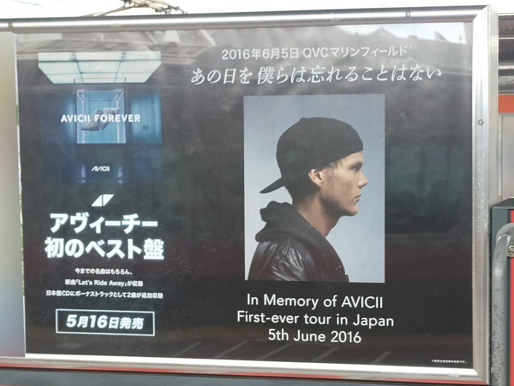 東京会場最寄り駅にポスターが再掲出! 2025.06.23 TOPICS ◆東京会場 (好評につき再掲出!!) 2016年6月、Avicii最初で最後の来日公演を行ったQVCマリンフィールド最寄り駅のJR海浜幕張駅構内上りホームに現在絶賛発売中のAvicii初のベストアルバム『フォーエヴァー~ベスト・オブ・アヴィーチー』の広告が掲載中です! ◢掲出期間◤ 6/23(月)〜6/29(日) ※駅及び駅係員へのお問い合わせはご遠慮ください