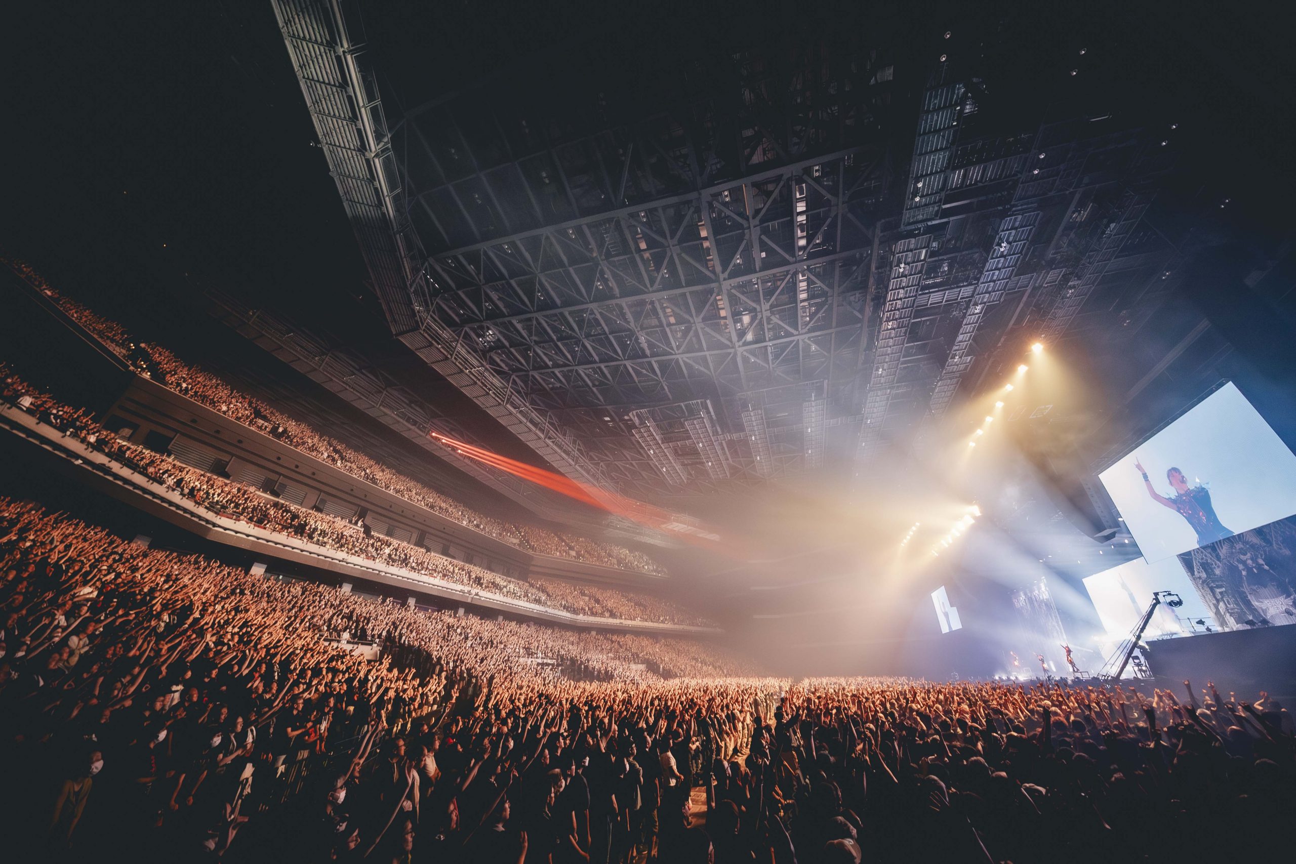 終盤の「Fire After Fire」では、炎のようにうねるLED演出がステージを赤く染め上げる。その光景はまるでBABYMETALを威圧するかのように激しく、観客は拳を高々と掲げ、身体全体で応える。信者もTHE ONEも垣根なく一体となり、場内は究極の熱狂に包まれた。