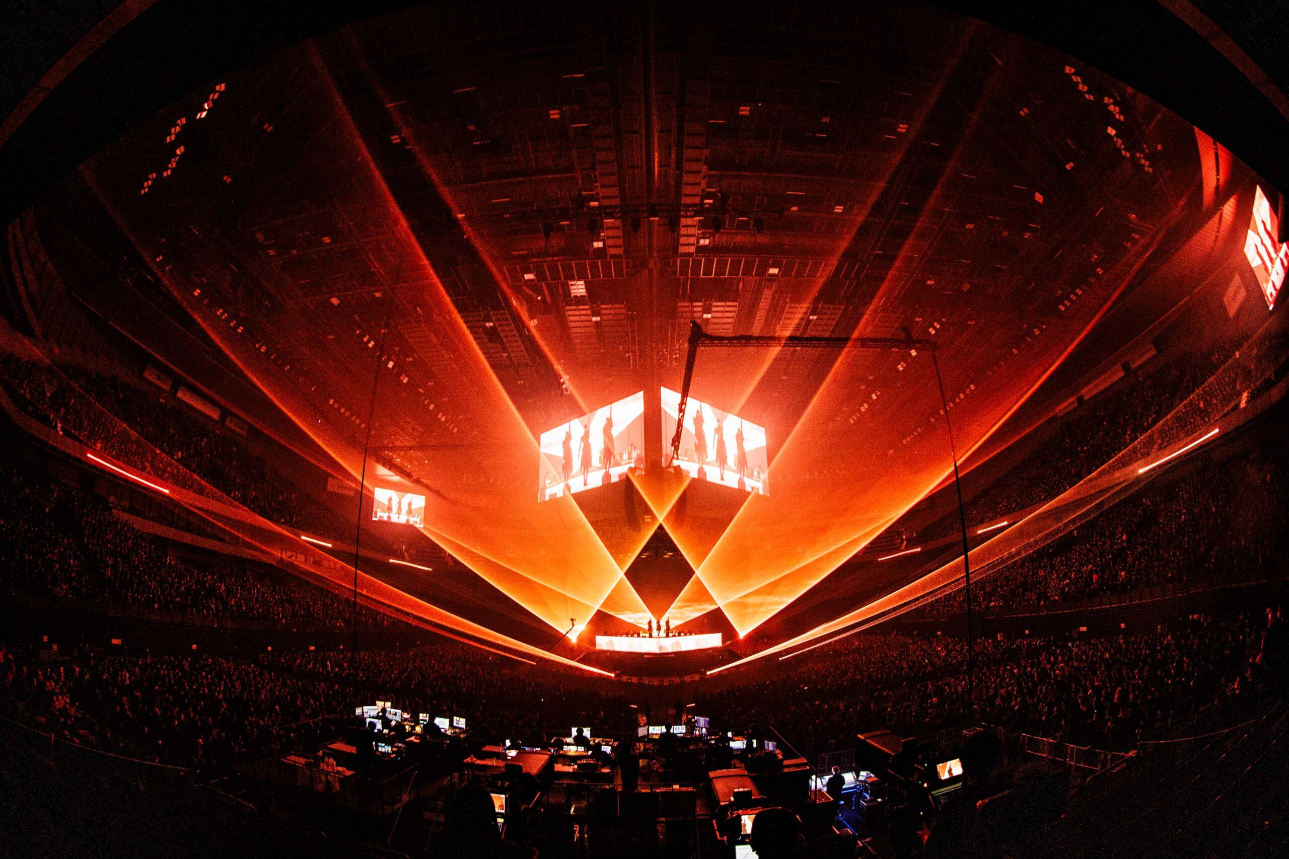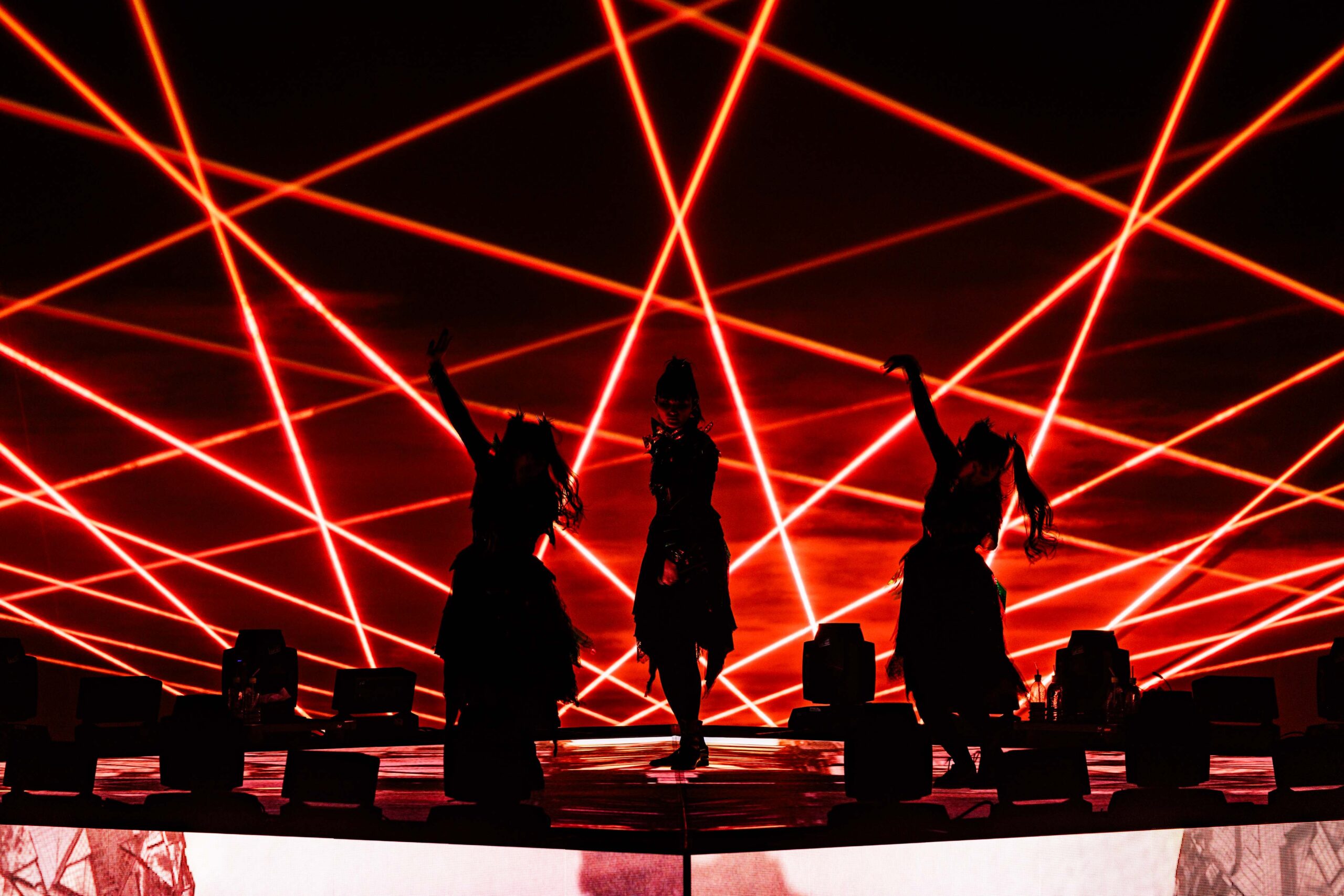 場内が暗転すると「METAL FORTH」のストーリームービーがスタート。「キツネ様のお告げにより、METAL FORTHを構成する全てのピースがここに集結するのだ」とアナウンスがある。アルバムジャケットのデザインを彷彿とさせる菱形のセンターステージとその外周に設置された回廊、そして巨大スクリーン、さらには神バンドが鎮座するサブステージがライトアップされる。 「from me to u (feat. Poppy)」、「RATATATA (BABYMETAL x Electric Callboy)」と立て続けにヒットチューンを繰り出し、会場も一気にヒートアップ。ストーリームービーを挟んで「Song 3 (feat. Slaughter to Prevail)」、「KON! KON! (feat.Bloodywood)」、「KxAxWxAxIxI」、と進むにつれ、「METAL FORTH」のアルバム収録順に披露されていることが明らかになってきた。その通りに「Sunset Kiss (feat.Polyphia)」、「My Queen(feat. Spiritbox)」、そして世界初披露となる「Algorism」では歓喜の声が上がる。「メタり!!(feat. Tom Morello)」に続いて、こちらも世界初披露となりアルバムのラストを飾る「White Flame -白炎-」がスタート。白い炎の中で超絶技巧な演奏を繰り出す神バンドの演奏にも圧倒されながら、あっという間に「METAL FORTH」全曲披露というスペシャルな体験はエンディングを迎えた。「Beyond HEAVY METAL」のメッセージのままに、様々なタイプのメタルを披露した最新で最強のBABYMETALのステージであった。
