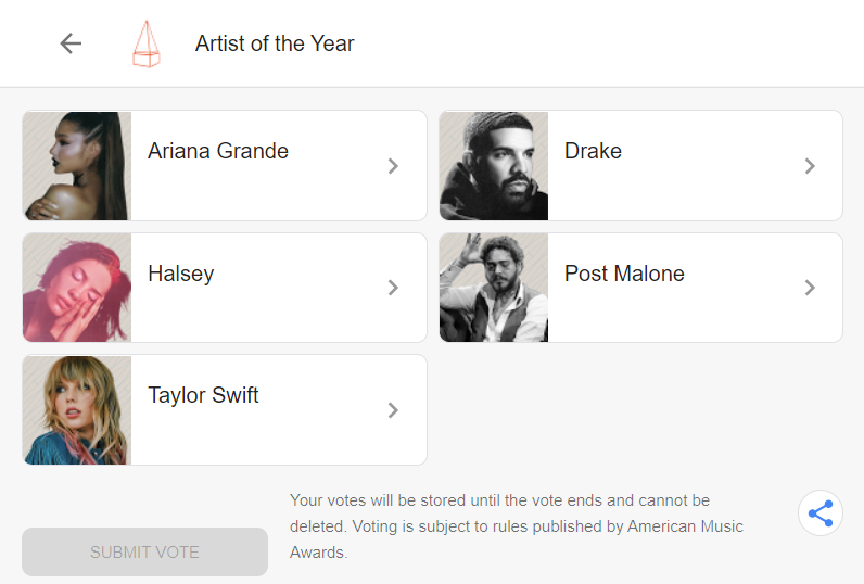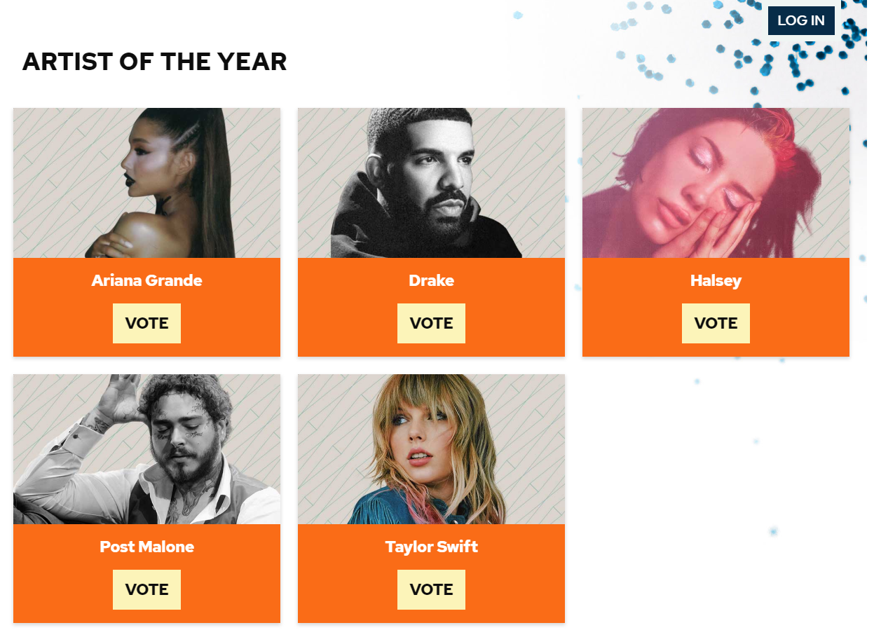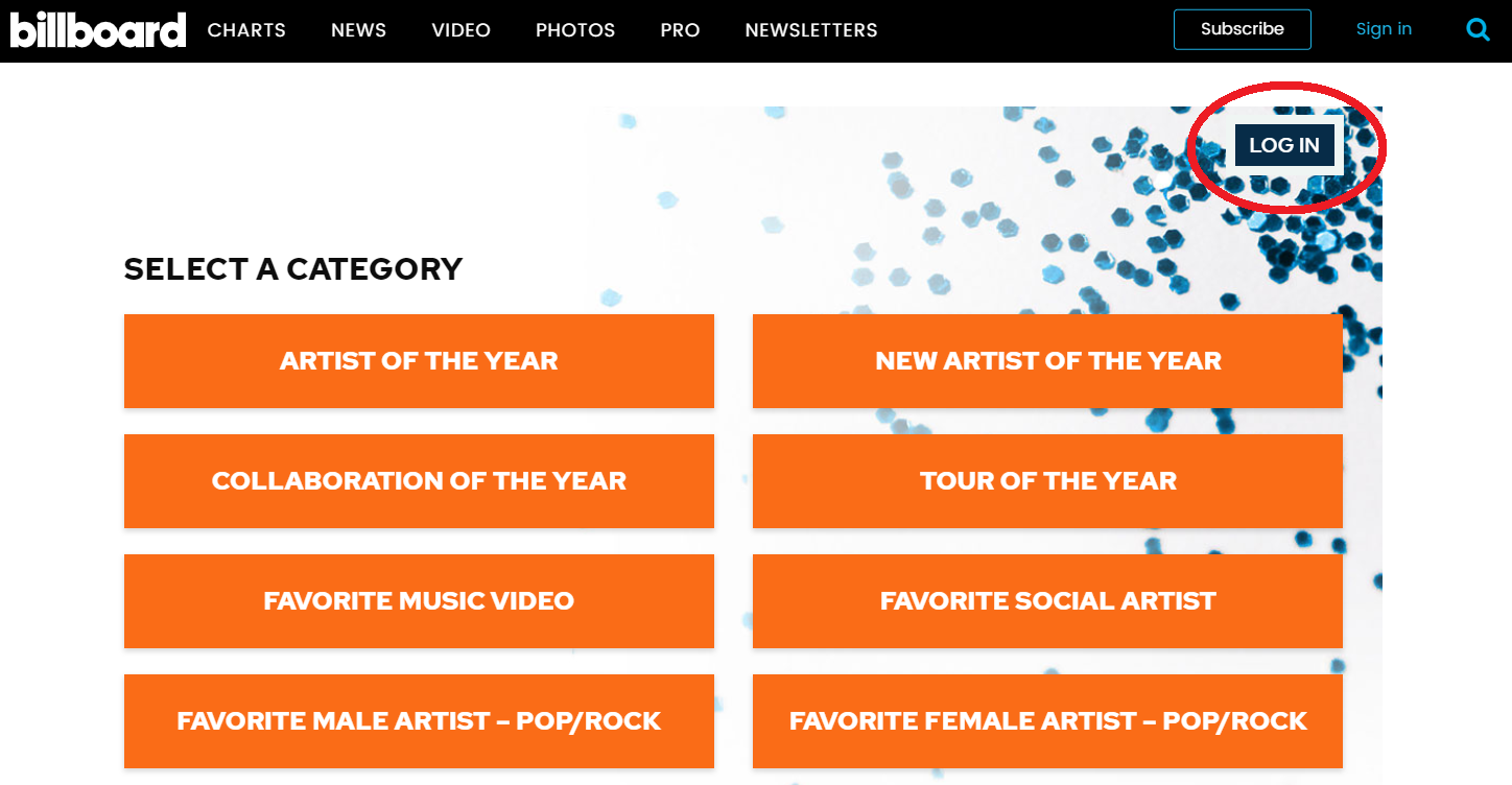 2:投票ページ右上の「LOG IN」からTwitterまたはFacebookでログイン