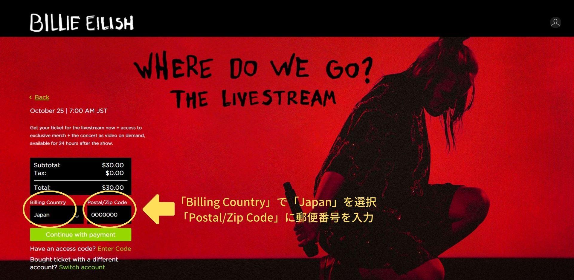 チケットのお求めはこちら → https://livestream.billieeilish.com/