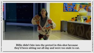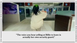 「最初にモールを偵察しに来た時、ビデオ全体のイメージが頭に浮かんだの。それでみんなに、全てのショット、全てのポーズ、全てのズームイン、詳細なカメラの動きを叩き込んで、そこから順に撮影していったわけ。すごく楽しかった。」ーービリー・アイリッシュ