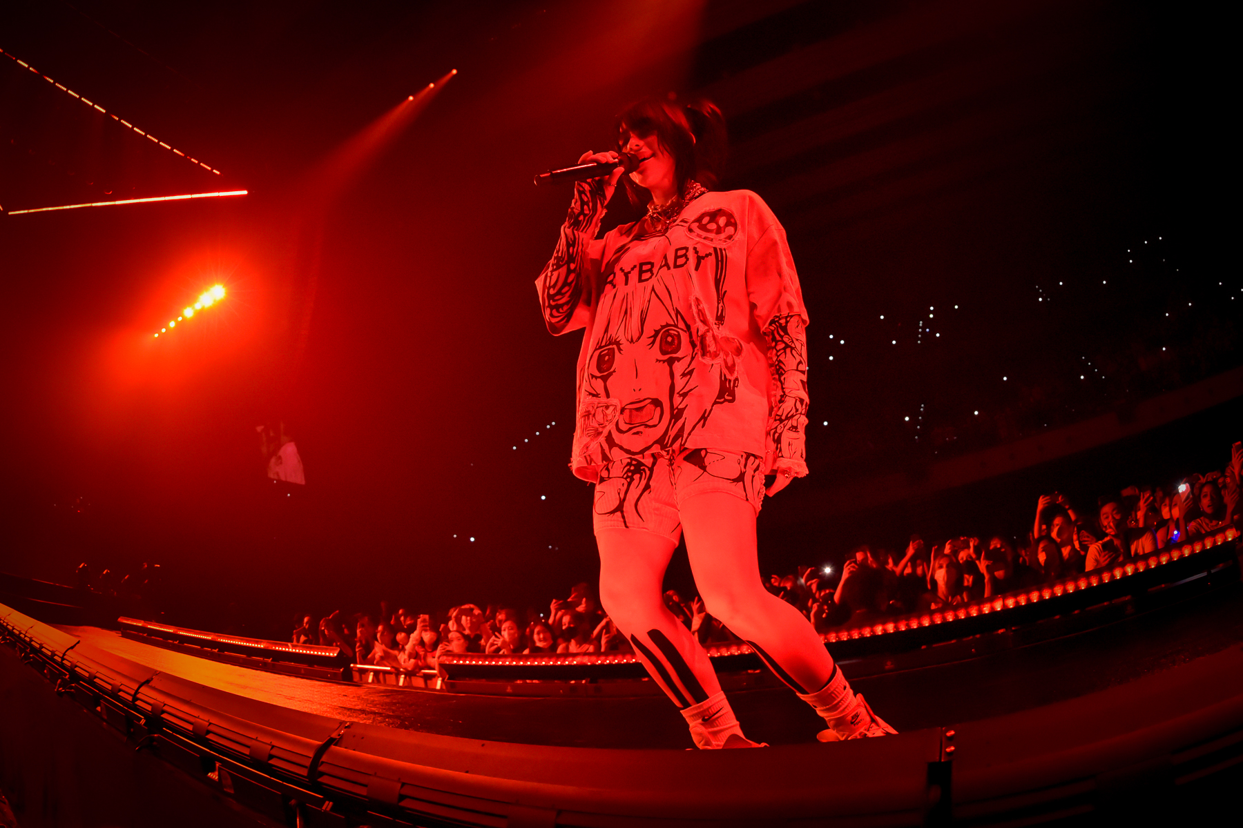 ビリー・アイリッシュは、観客に深呼吸をさせる。8月26日、有明アリーナ。即完だった単独初来日の終盤、20歳のスーパー・ポップスターは幸運にもその場に居合わせたファンたちに「スマホから一旦離れて、“いまここにいる“自分に集中して」と導いたのだ。なんという、大らかさ。アコースティックな歌ほど映えるソプラノの歌声、すべてを見通しているかのような碧眼とともに発するカリスマ性、走ったり寝転がったりジャンプしたりするたびにあふれる生命力。そういう目と耳で感じられるアーティストとしての度量の大きさもさることながら、人間、ビリー・アイリッシュはとてつもない大物だった。
