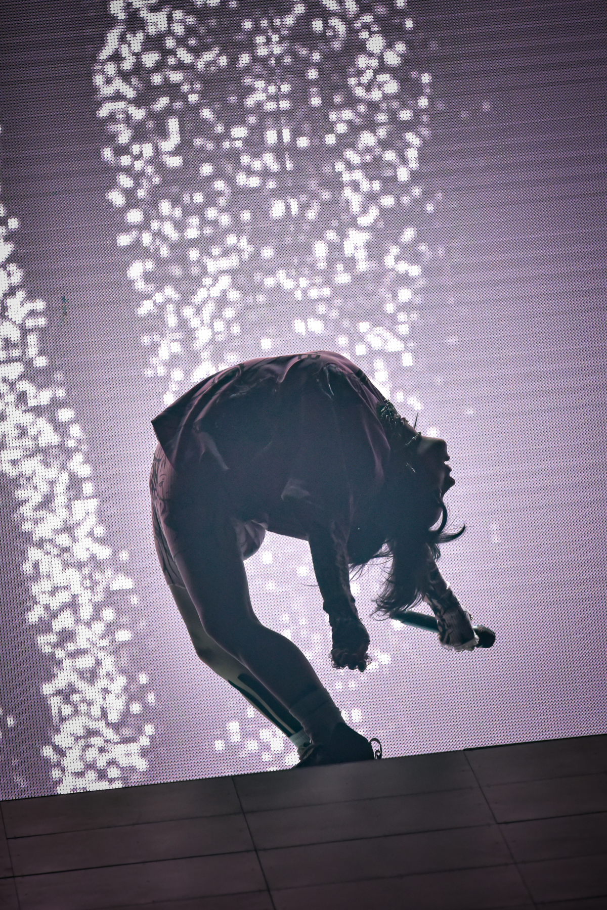 バンドはドラマーのアンドリュー・マーシャルと、ビリーの楽曲のほとんどを一緒に手がけるの兄のフィニアス・オコネルのみ。予め録音した音に楽器の音を重ねていたが、ドラムの音が力強く十二分にライヴ感があった。予想以上に「スーパーお兄ちゃん」ぶりを発揮していたのが、フィニアスだ。ギターとベースを持ち替え、キーボードを弾き、バックコーラスをも務める。彼自身、アルバムをリリースしているシンガーだが、妹のツアーではサポートに徹していた。ビリーの音楽的なバックボーンのみならず、精神的な安定はこの4歳上の兄なくしては成り立たない。