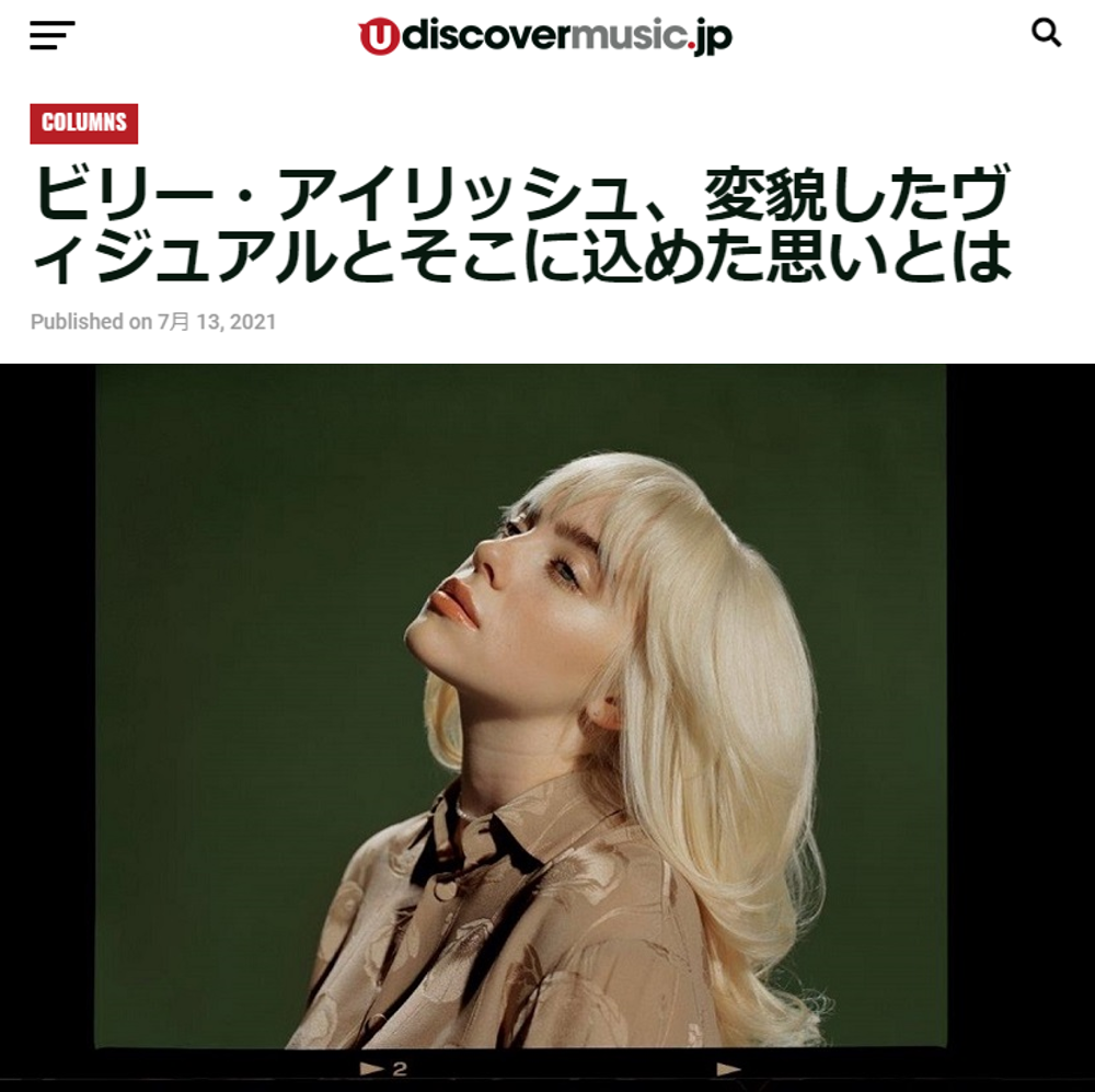 NEWS ALL TOPICS MEDIA LIVE/EVENT 2021.08.02 MEDIA - WEB 最新ロングインタビューがRolling Stone Japanで公開! 2021.07.27 MEDIA - TV 7/29(木)深夜 フジテレビ系音楽情報番組「Tune」にて 最新アルバム『ハピアー・ザン・エヴァー』より「NDA」が紹介されます! 2021.07.16 MEDIA - TV MTV7月後期の「BUZZ CLIP」に決定! 2021.07.14 MEDIA - TV スペースシャワーTVにてミュージック・ビデオ特集 2021.07.13 MEDIA - WEB 【解説】ビリー・アイリッシュ、変貌したヴィジュアルとそこに込めた思いとは 2021.07.01 MEDIA - TV スペースシャワーTV 7月のV.I.P. INTERNATIONALに決定! 2021.06.25 MEDIA - WEB Real Soundにてコラム記事が掲載 2021.05.28 MEDIA - TV 5/28(金)BS朝日「ベストヒットUSA」にてビリー・アイリッシュ特集がオンエア! 2021.05.14 MEDIA - WEB BARKSにてコラム記事にピックアップされました 2021.05.03 MEDIA - TV 総合テレビ版 放送決定!5月4日(火)夜10時45分 NHK総合 「ヒャダ×体育のワンルーム☆ミュージック」 1…34567891011…141…56789…14