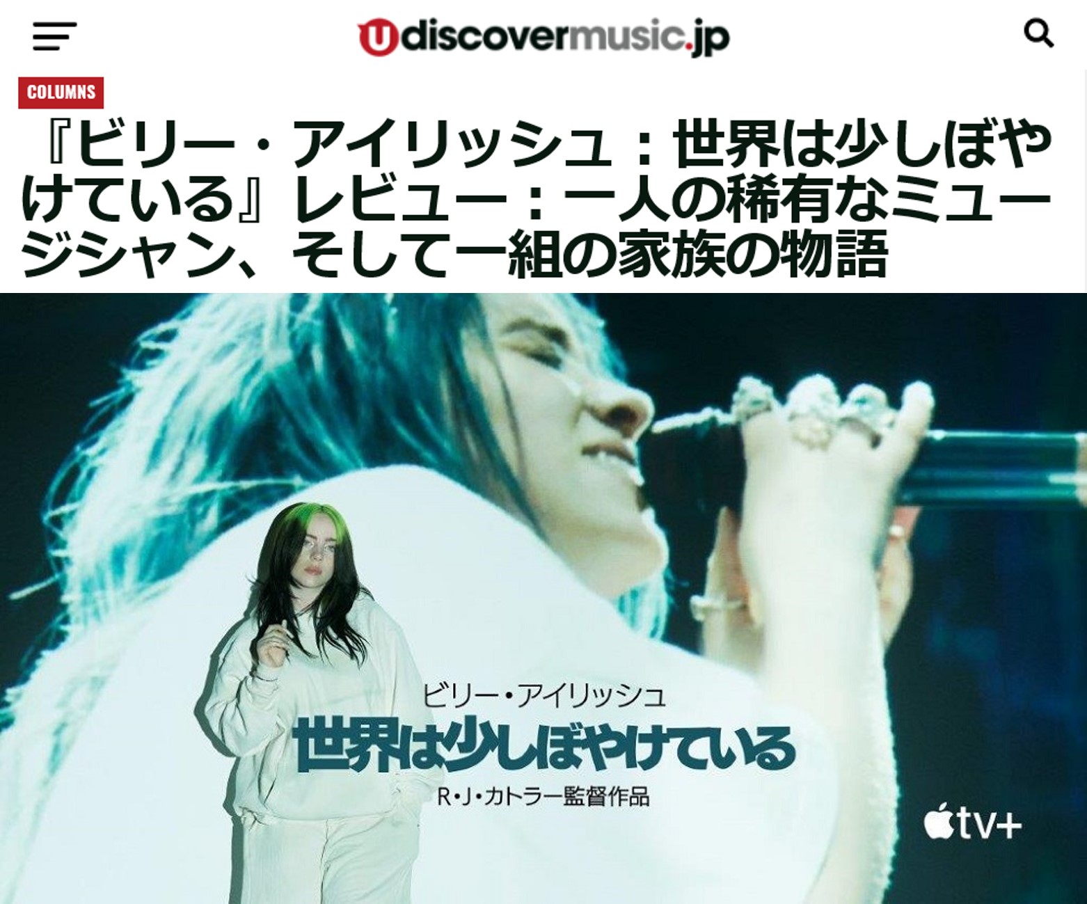 NEWS ALL TOPICS MEDIA LIVE/EVENT 2021.03.19 MEDIA - WEB VOGUEにビリー・アイリッシュのレビュー記事が掲載 2021.03.18 MEDIA - TV 3/20(土) BSテレ東「ファッション通信」で紹介されます! 2021.03.12 MEDIA - WEB Real Sound にて先日公開されたドキュメンタリー映像のコラムが掲載 2021.03.02 MEDIA - WEB 【記事】ビリー・アイリッシュ、Apple Musicの番組「me & dad radio」で紹介した曲と語ったこと【後半】 2021.02.26 MEDIA - TV その名も「オレミー賞」!?こがけん、SKY-HIなど豪華出演陣が第63回グラミー賞を大胆予想する特別番組がスペースシャワーTVにて放送! 2021.02.26 MEDIA - WEB 【レビュー】『ビリー・アイリッシュ:世界は少しぼやけている』:一人の稀有なミュージシャン、そして一組の家族の物語 2021.02.26 MEDIA - WEB Web「FRONTROW」、ドキュメンタリーのレビュー掲載 2021.02.25 MEDIA - WEB 【記事】ビリー・アイリッシュ、Apple Musicの番組「me & dad radio」で紹介した曲と語ったこと 2021.02.12 MEDIA - TV 2/19(金)テレビ朝日「ミュージックステーション 」に出演決定! 新曲「Therefore I Am (ゼアフォー・アイ・アム)」日本TV初披露! 2021.02.05 MEDIA - TV 本日深夜 日本テレビ系「バズリズム02」で紹介されます! 1…456789101112…141…678910…14