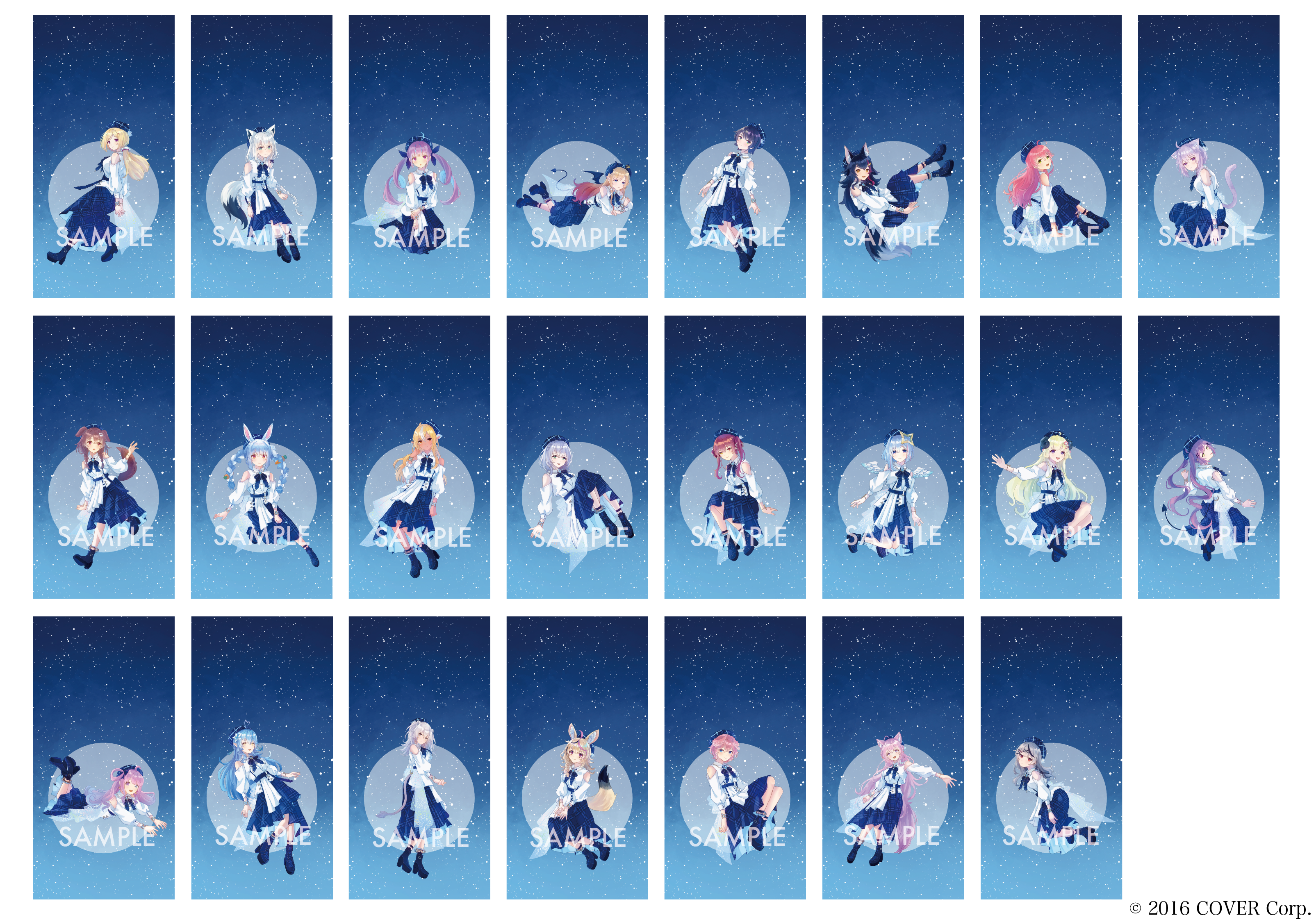 アキ・ローゼンタール/白上フブキ/湊あくあ/癒月ちょこ/大空スバル/大神ミオ/さくらみこ/猫又おかゆ/戌神ころね/兎田ぺこら/不知火フレア/白銀ノエル/宝鐘マリン/天音かなた/角巻わため/常闇トワ/姫森ルーナ/雪花ラミィ/獅白ぼたん/尾丸ポルカ/鷹嶺ルイ/博衣こより/沙花叉クロヱ
