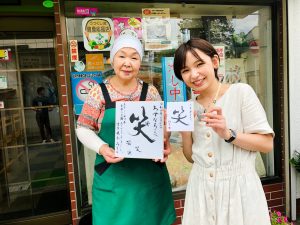 笑顔が素敵なお母さんには「笑」の書をプレゼントし、記念撮影♪