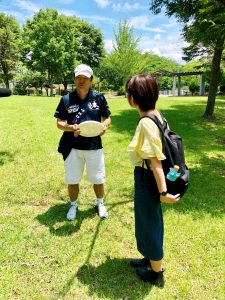 散策中、フライングディスクを持った男性に遭遇したので声を掛けてみると、