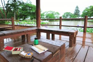 「雨だからこそ楽しめる場所……、あっ!あやめ観に行こう!」