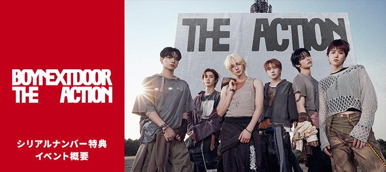 WHAT'S NEW 2025.11.10 TOPICS BOYNEXTDOOR Digital Single「SAY CHEESE!」配信開始& 配信キャンペーン開催! 2025.10.21 TOPICS BOYNEXTDOOR 5th EP 『The Action』シリアルナンバー特典の特設ページオープン! 2025.10.20 TOPICS BOYNEXTDOOR 5th EP『The Action』配信開始& 配信キャンペーン開催! 2025.10.19 TOPICS BOYNEXTDOOR 5th EP『The Action』発売記念全国CDショップ「ラッキードローイベント」開催決定! 2025.10.19 TOPICS BOYNEXTDOOR 5th EP『The Action』発売記念全国CDショップ店頭企画開催決定! MORE