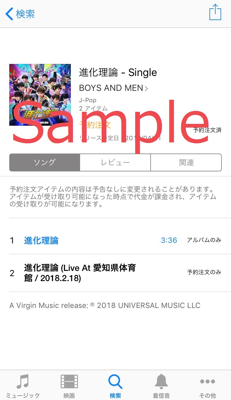 2018.4.21に配信リリースされる楽曲BOYS AND MEN『進化理論』をiTunesで予約していただいた方に、