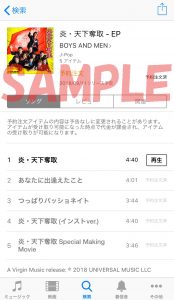 iTunesで予約受付中の「炎・天下奪取」EP・・・600円