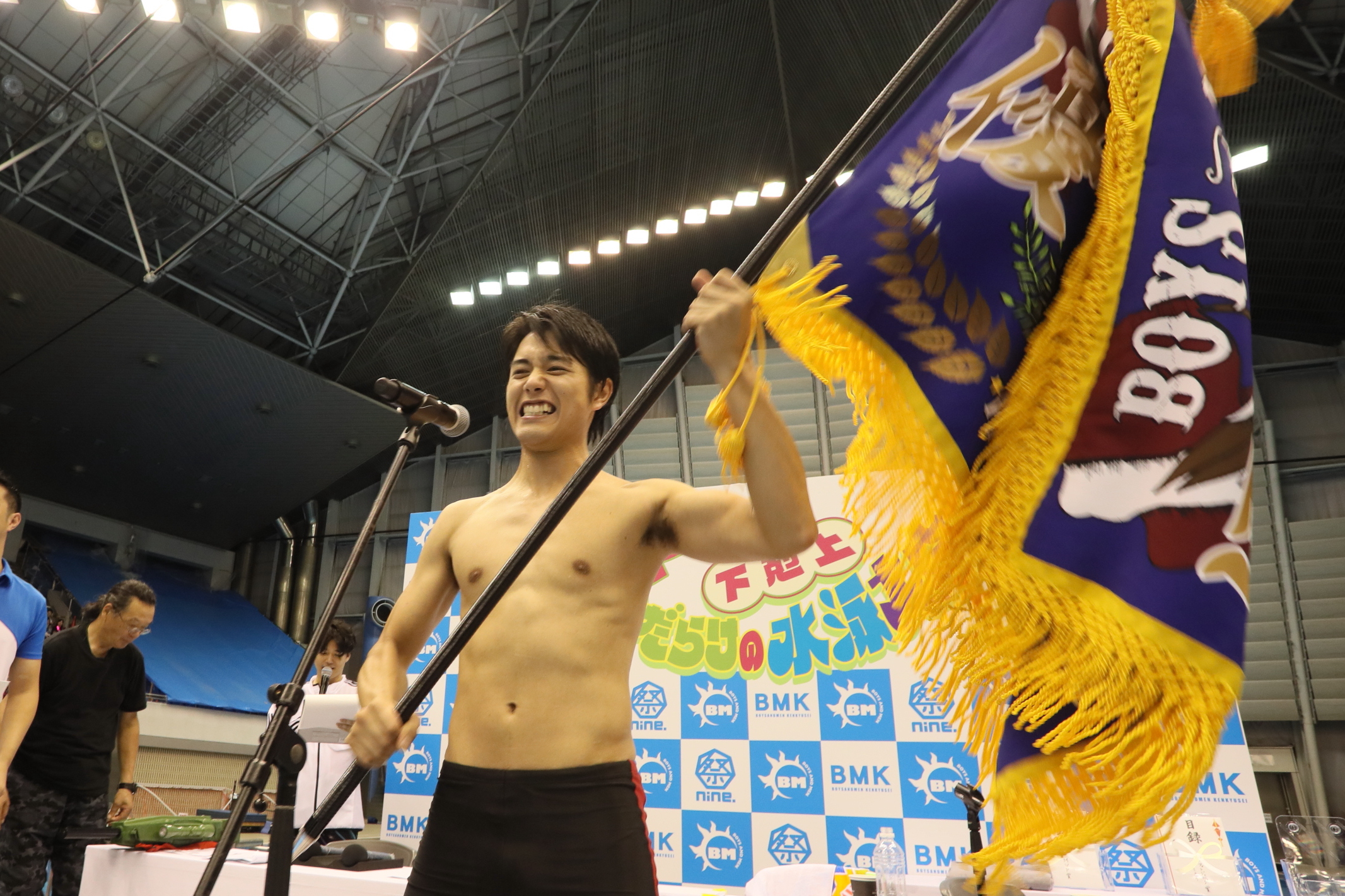 宮下「3日前に同じ事務所の(和田)アッコさんから電話があって、オマエ、ボイメンに負けたらどうなるかわかってんのか!」と喝を入れられたことを暴露。そんなハプニングあり、笑いあり、感動ありの水泳大会に、メンバーも会場の観客も大満足の至福の時となった。