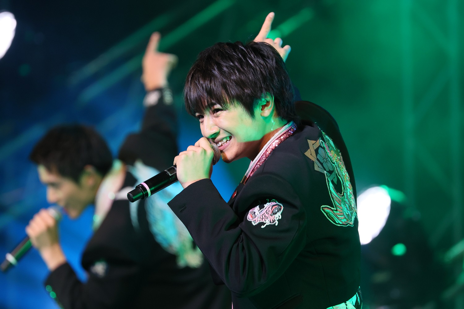 初日となった26日は、〜激闘乱舞編〜と称し、『YanKee5』vs『誠』で激闘するステージを展開。「炎・天下奪取」で爆走スタートを切ると、のっけからのアップテンポナンバーのオンパレード!ライブのコンセプトにもあった通り、水野、田村、辻本、小林からなる『YanKee5』と本田、勇翔、平松、吉原からなる『誠』の激闘ステージでは、ヤンキー節が炸裂した導入映像で爆笑を攫うと「Fight&Fire」では、黒のハードロックスタイルの『YanKee5』とパステルカラーで爽やかな装いの『誠』という対照的なコンセプトで舞台に登場。互いを牽制し合いながらのバトルタイムで会場を沸かせた。