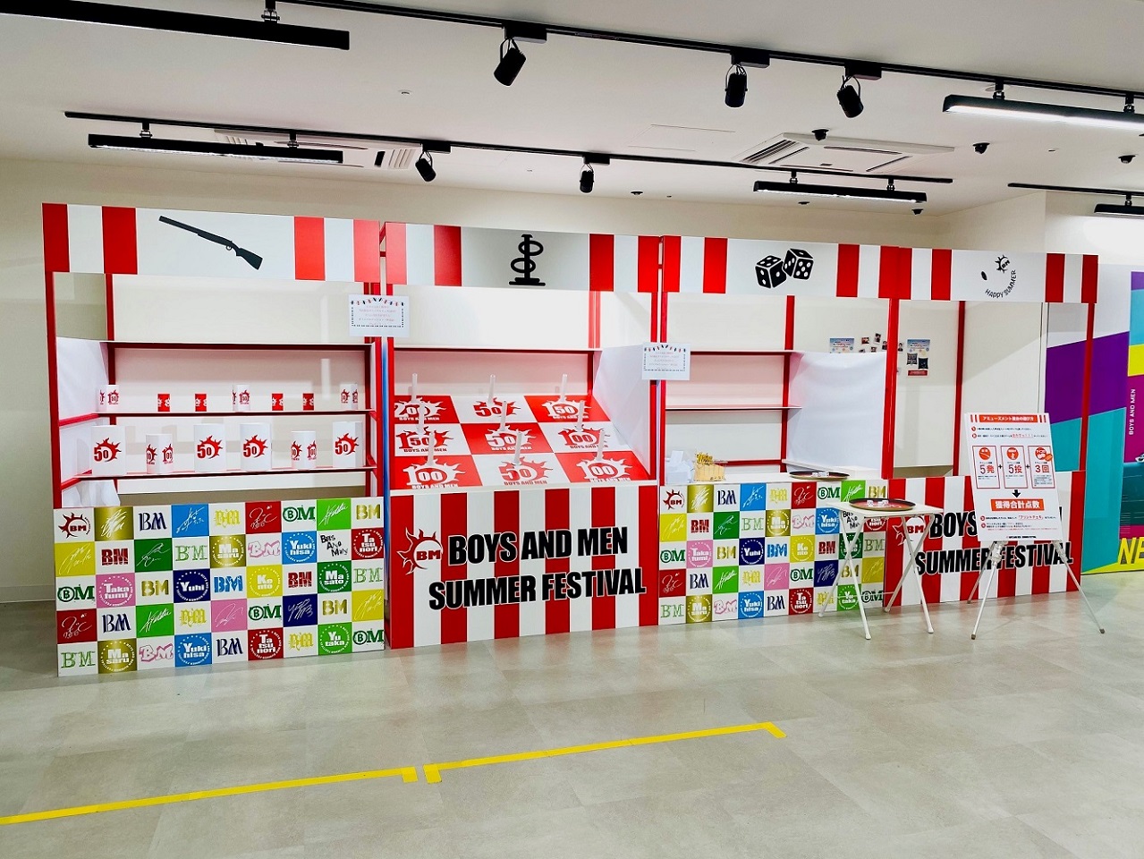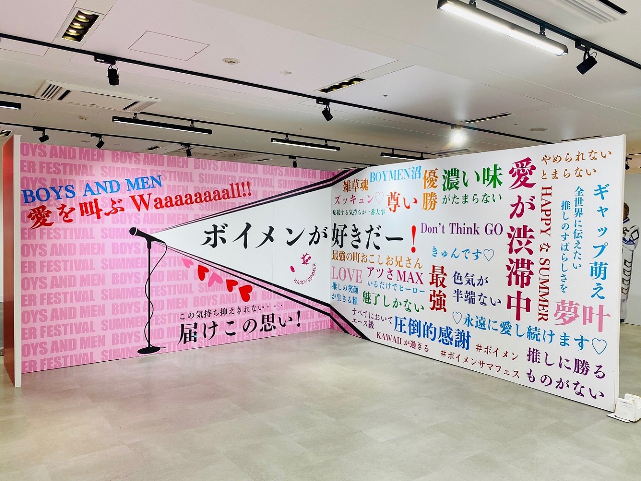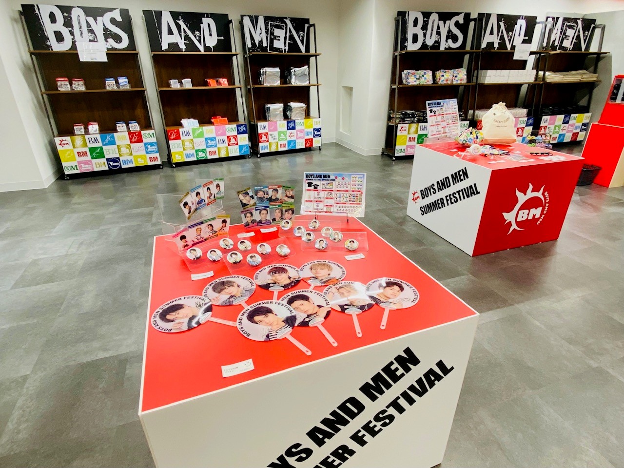 入口では、「BOYS AND MEN SUMMER FESTIVAL」と書かれた提灯にお出迎えされ、会場内も夏祭りの雰囲気一色に。ここでしか見ることができないメンバーからのメッセージ動画もオンエアされているスペシャルな空間が広がっています。