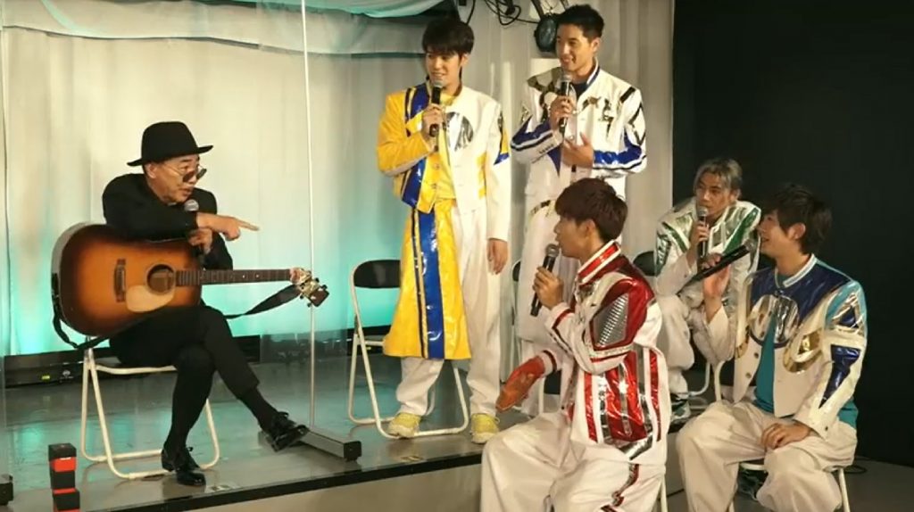 ボイメンが過去に木梨憲武さんのラジオ番組やフェスなどに参加したことが縁で、今回の配信番組への出演を引き受けたという木梨さんは、ボイメン辻本達規が新車を購入したことを弄ったり、「夜のヒットスタジオ」生放送後に美空ひばりさんに自宅に呼びつけられ「なんでちゃんと歌わないの!?」と説教を受けた話などかつての音楽番組でのエピソードを数々披露。またギターの中から突然腕時計を取り出し「これ視聴者プレゼントにして!」と太っ腹なところを見せるなど、終始ノリノリ♪ステージでは、自身が10月にカバーとしてリリースする、ダウン・タウン・ブギウギバンドの44年前のヒット曲「サクセス」を貫禄たっぷりに歌い上げ、番組を盛り上げた。