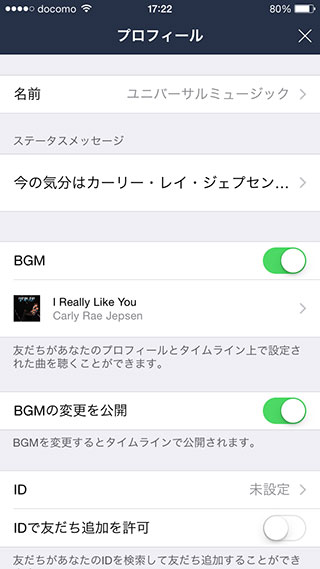 「アイ・リアリー・ライク・ユー」をLINEプロフィールにBGM設定して、