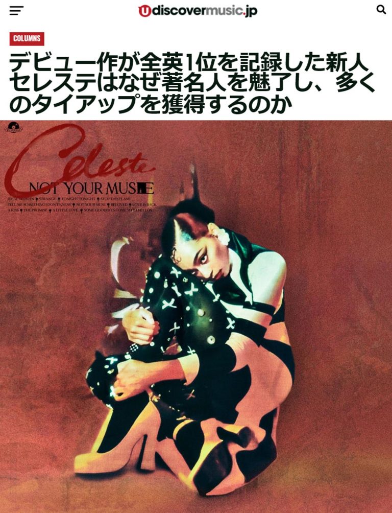 NEWS ALL TOPICS MEDIA LIVE/EVENT 2025.10.17 MEDIA - TV 10/23(木)フジテレビ系音楽情報番組「Tune」 2021.03.08 MEDIA - WEB 最新インタビューが読売新聞オンラインに掲載! 2021.03.02 MEDIA - TV 3/4(木)深夜 フジテレビ系音楽情報番組「Tune」にて デビュー・アルバム『ノット・ユア・ミューズ』より「ラヴ・イズ・バック」が紹介されます! 2021.02.24 MEDIA - TV 3/1(月)tvk「洋楽天国+」にてセレステ特集がオンエア! 2021.02.15 MEDIA - WEB デビュー作が全英1位を記録した新人セレステはなぜ著名人を魅了し、多くのタイアップを獲得するのか 2021.02.09 MEDIA - WEB Rolling Stone にて特集記事が展開:UKを制したソウル新世代、セレステが語る「自分の声」を見つけるまでの過程 2021.02.05 MEDIA - WEB アルバムレビューがBillboard Japanに掲載 2020.06.19 MEDIA - RADIO J-WAVE「STEP ONE」6月22日(月)の放送で最新インタビューがオンエア! 2020.03.02 MEDIA - TV SSTV 3月度 POWER PUSH! INTERNATIONALに決定!