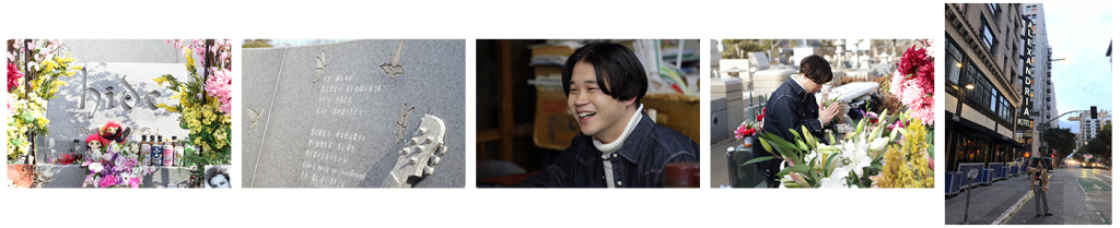 そんな矢本が気になったのは、墓石に刻まれている事実上最期の楽曲とされる「HURRY GO ROUND」の歌詞。その文字を追うと、輪廻転生を表現する言葉にも見て取れる。hideはどうやって生きて、どうして亡くなってしまったのだろう。その心を胸に矢本悠馬のhideを知るドキュメンタリーはスタートする。