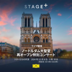 2019年4月の大規模火災により倒壊した仏パリのノートルダム大聖堂の再建記念イベントの一環として行われる特別コンサートが、ドイツ・グラモフォンの音源・映像配信サービス「ステージプラス」にて生配信される。