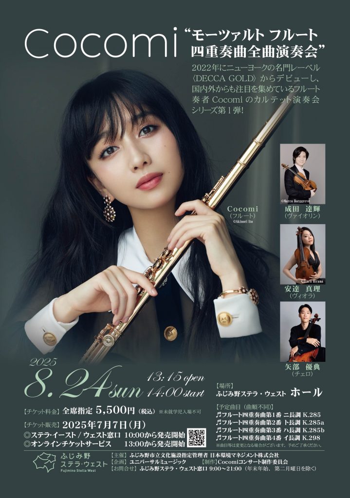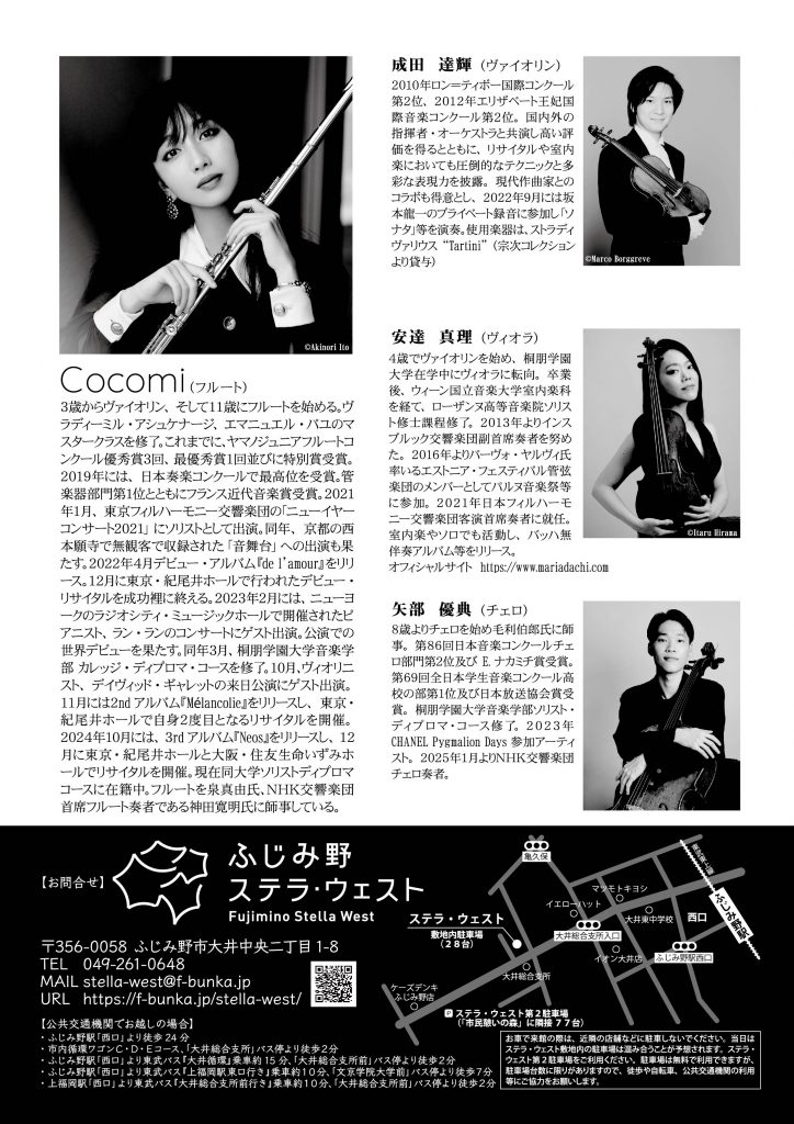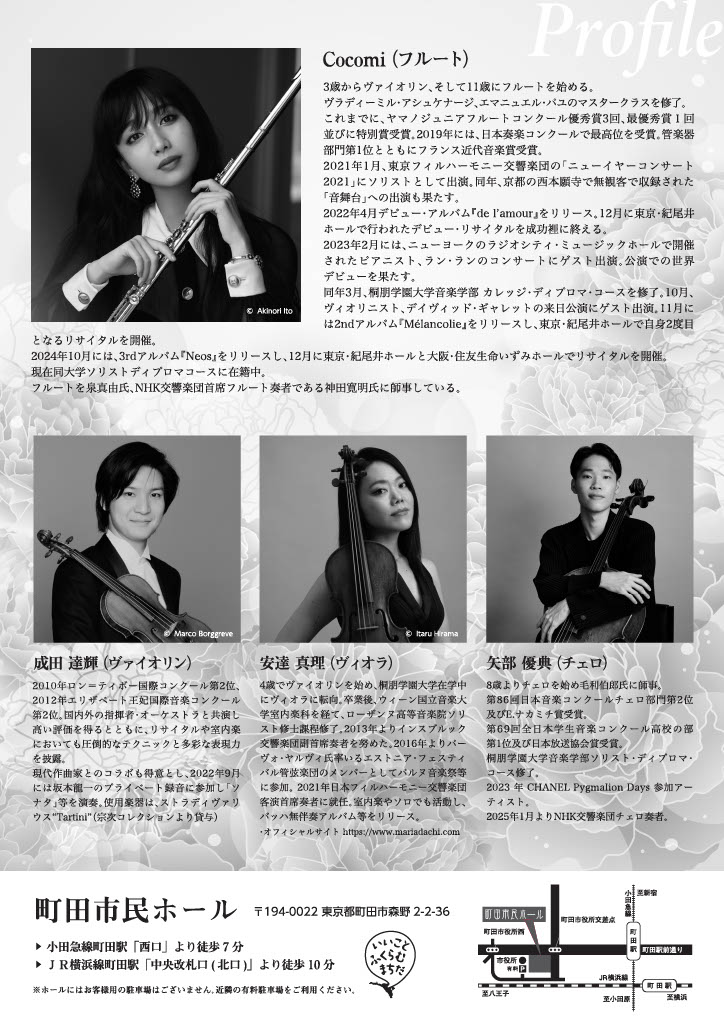 出演:Cocomi(フルート)/ 成田達輝(ヴァイオリン)/ 安達真理(ヴィオラ)/ 矢部優典(チェロ)